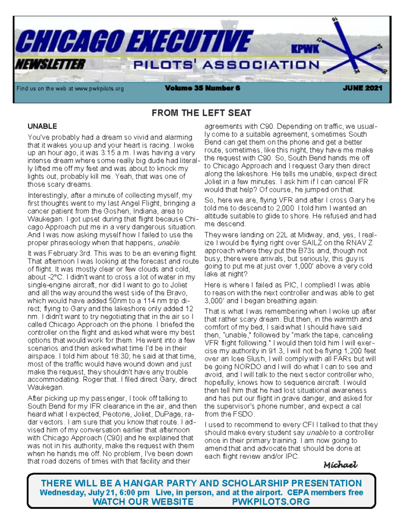 Chicago Executive Pilots' Association Upcoming Events Notice There are no upcoming events. Recent News CEPA Newsletter August 2021 By editor | August 1, 2021 Read More » CEPA Newsletter July 2021 By editor | June 30, 2021 Read More » CEPA Newsletter June 2021 By editor | May 30, 2021 Read More » CEPA Newsletter May 2021 By editor | April 30, 2021 Read More » « Previous 1 … 14 15 16 17 18 … 80 Next » Recent Posts CEPA Newsletter October 2025 Michael Baraz, CEPA’s Treasurer and former President receives FAA Award CEPA Newsletter September 2025 CEPA Newsletter August 2025 CEPA Newsletter July 2025 CEPA Newsletter June 2025 CEPA Newsletter May 2025 CEPA Newsletter April 2025 Participate Membership Scholarship donations Recent Posts CEPA Newsletter October 2025 Michael Baraz, CEPA’s Treasurer and former President receives FAA Award CEPA Newsletter September 2025 CEPA Newsletter August 2025 CEPA Newsletter July 2025 CEPA Newsletter June 2025 CEPA Newsletter May 2025 CEPA Newsletter April 2025